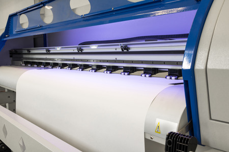 Blank paper roll in large printer format inkjet machine for industrial business.