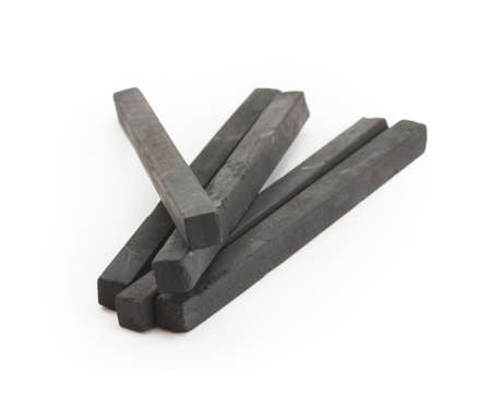 Natural activated bamboo charcoal on concrete background. Realistic pieces charcoal.