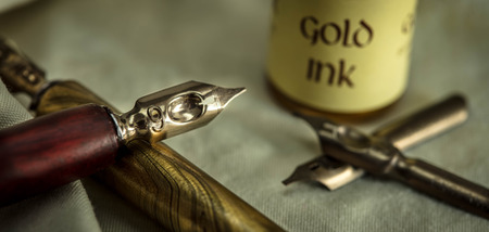 Business Accessory, Two Luxury Traditional Vintage Fountain Pens and Nib on A Table with Copy Space for Text Decoration.