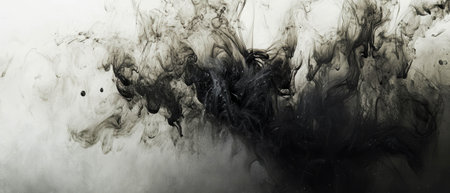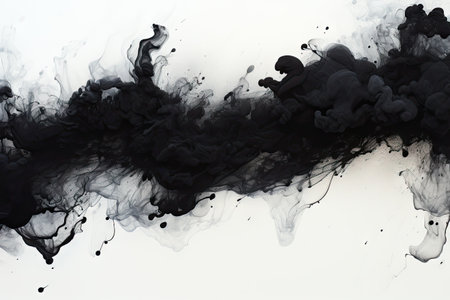 Desktop wallpaper. Black cloud of ink on a white background. Creative hyptonic background. Black watercolor paints in water on a white background. Environmental pollution concept.