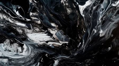 Contemporary Acrylic Pour Background. Paint Swirls in Beautiful Black and White colors, with White Particles. Generative AI illustrator