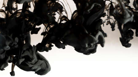 Drops of black ink in water. Cosmic star background. Environmental pollution concept. Beautiful wallpaper for your desktop. Awesome abstract background. Black cloud of ink on a white background.