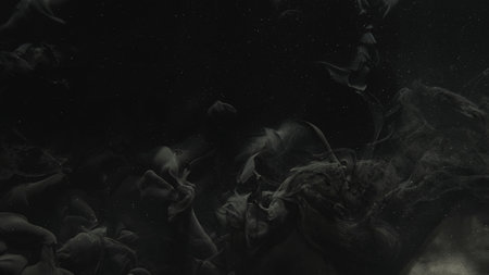 Black smoke texture. Ink water shot. Night storm cloud. Dark smog flow sparkling glitter dust particles floating abstract art background.