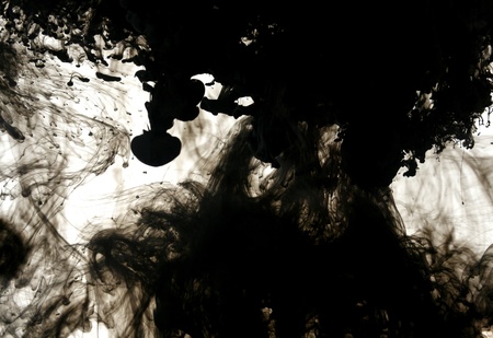 Beautiful wallpaper for your desktop. Awesome abstract background. Black cloud of ink on a white background. Drops of black ink in water. Cosmic star background. Environmental pollution concept.