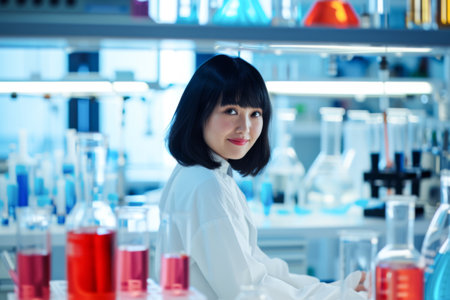 Portrait of young Asian female researcher carrying out scientific research in a lab