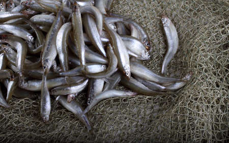 Fishing of the Caspian sprat on a net from a boat.