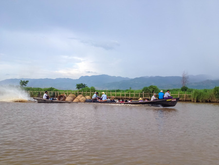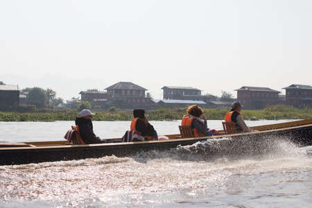 INLE LAKE, MYANMAR - OCTOBER 06 2014: Tourist travel in Inle lake the largest freshwater lake in Myanmar.