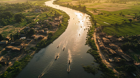 Aerial view of Mekong river in Vietnam. Mekong river is the largest river in Southeast Asia.
