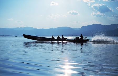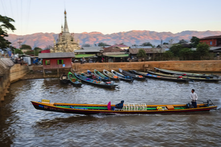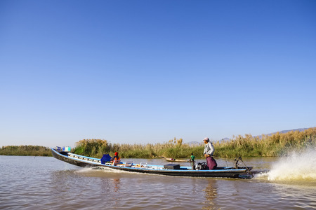 INLE LAKE, MYANMAR - DECEMBER 09, 2016 : local people traveling by boat on the Inle Lake Shan state in Myanmar