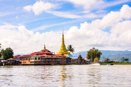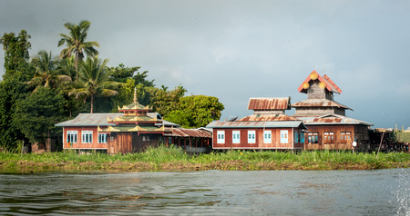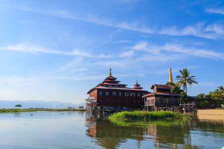 View of Nga Phe Kyaung (Jumping Cats) Monastery on Inle Lake, Myanmar. Inle Lake is famous for its floating villages and gardens.