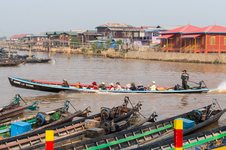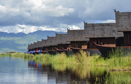 Mandalay, Myanmar, November 22, 2016: Inle Lake and houseboats, Myanmar, Burma