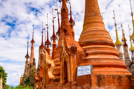 INDEIN VILLAGE, MYANMAR - AUG 31, 2016: Shwe Indein Pagoda, a group of Buddhist pagodas near Ywama and Inlay Lake in Shan State, Burma