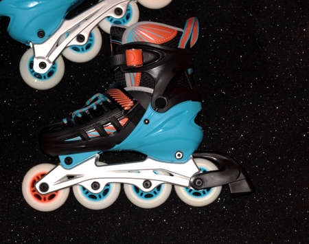 Close up of inline roller skates. Extreme sport. Lifestyle activity. Concept about sport and leisure