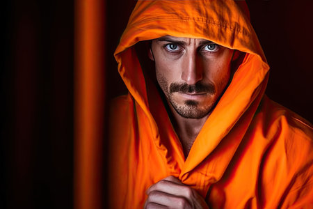 Behind the Bars: The Orange Robe Prisoner. Generative AI