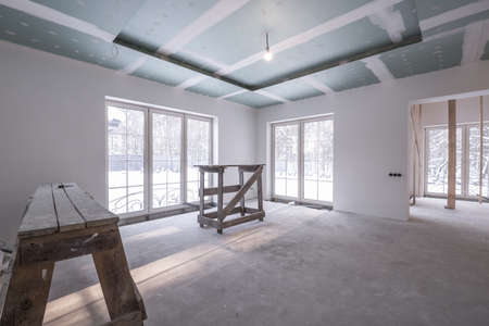 Unfinished apartment interior in a morning
