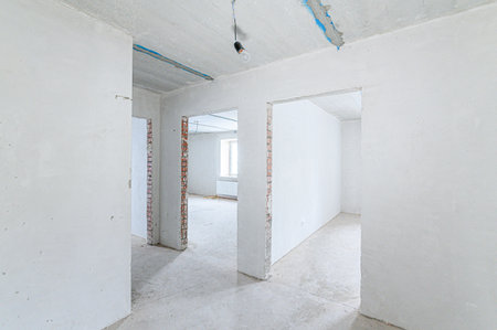 a new apartment repair finishing works in progress, plastering, painting and flooring construction