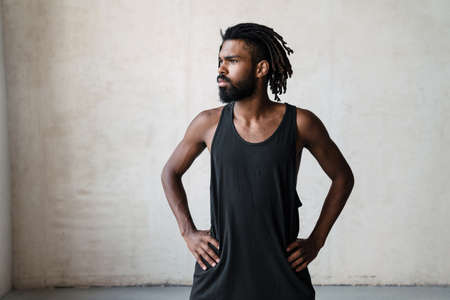 Hot african american man looking at copy space and smiling