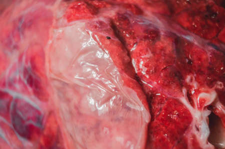 A piece of beef lung close-up. Meat for cooking. Selective focus