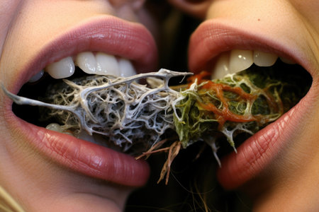 photo close-up of two women's mouths with a cannabis