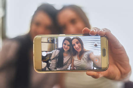 Mornings can be for selfies. Cropped shot of a two young women taking a picture in the morning at home.