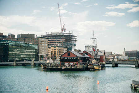 View on Boston harbor at sunny day