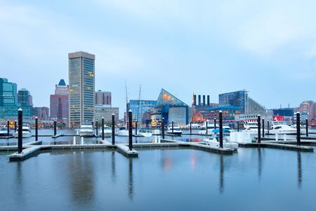 Baltimore, Maryland, United States à ¢ â,¬â € œ April 25, 2011: Downtown city skyline at the Inner Harbor and Baltimore National Aquarium.
