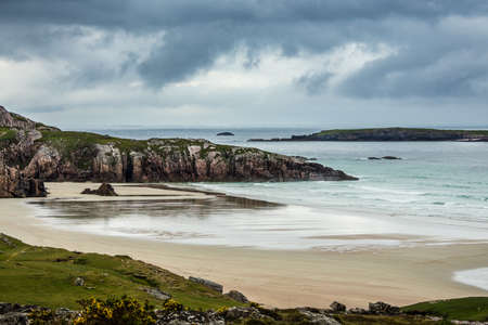 View over the beach and bay at Clashnessie on the north west coast of the Scottish highlands