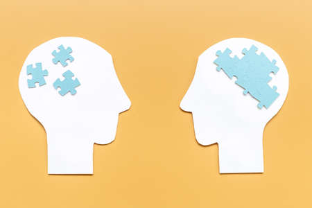Human head silhouette composed of individual puzzle pieces representing mental health