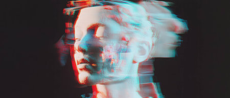 Glitch effect showcasing chromatic aberration with vibrant color shifts and distortion