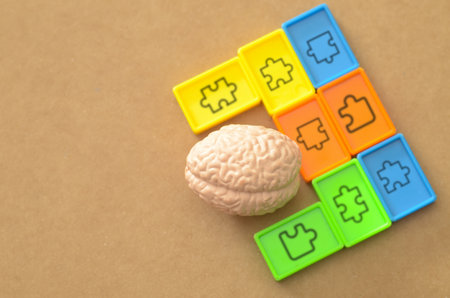 Mental Building Blocks: Brain Anatomy and Colorful Puzzle Tiles Representing Problem Solving