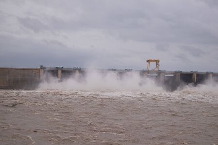 Water filled in Dam due to heavy rain and the gates of the reservior is opened to release the wtarer from the reservoir or dam.