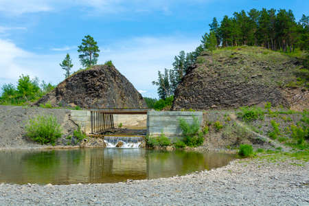 The dam of an unfinished hydroelectric power station on the Suenga River, Novosibirsk region