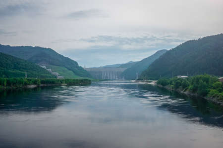 Yenisei River and Sayano-Shushenskaya Hydro Power Plant in Siberia