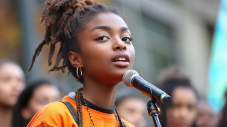 Young women passionately speaking at a rally, demanding justice and protection for minorities