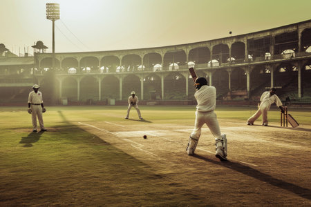 Cricket players in a traditional stadium Ai generated
