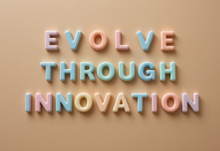 Creative composition featuring colorful letters that spell Evolve Through Innovation on a soft background, perfect for inspiring ideas and modern design.