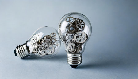 Lightbulb Invention Strategy. Gear Wheel Collaboration And Abstract Lamp