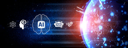 Innovation technology driven by Artificial Intelligence (AI). A concept of future tech development, machine learning, and business process automation. Motif
