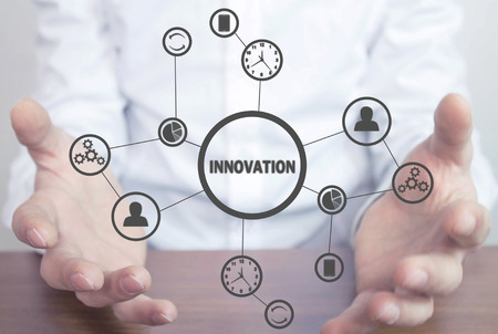 The concept word INNOVATION. Invention Development Design Concept.