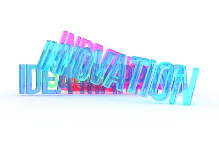 Innovation, business conceptual colorful 3D rendered words. Background abstract CGI typography, good for design.