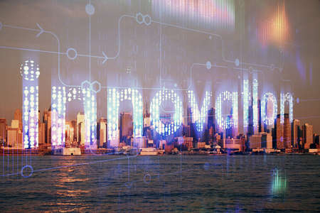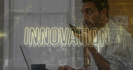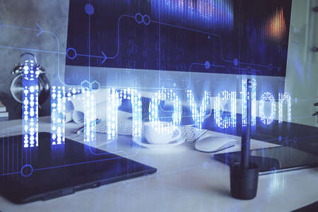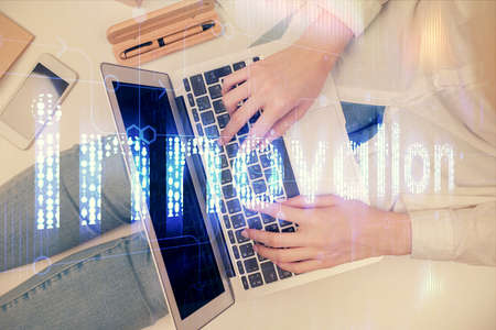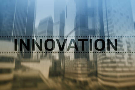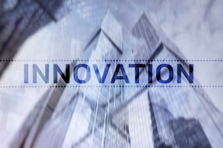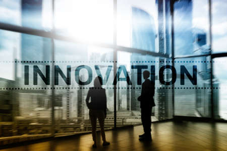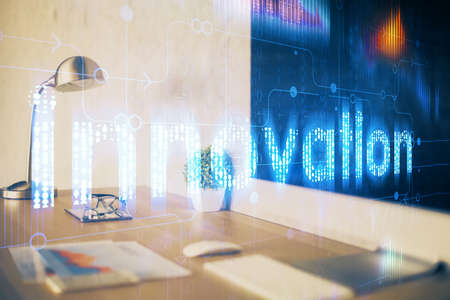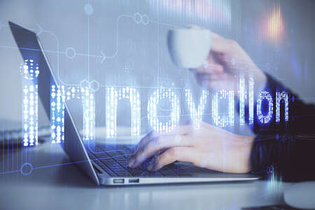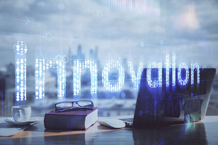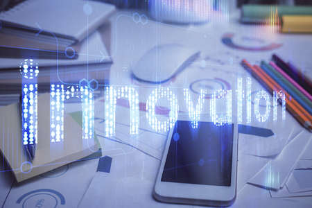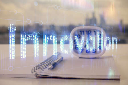 Double exposure innovation text. Business and technology concept.