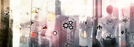 Double exposure innovation tex. Business and technology concept.