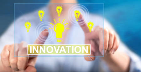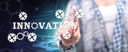 Woman touching an innovation concept on a touch screen with her finger