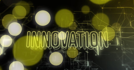 Image of innovation text over spots on black background. Social media and digital interface concept digitally generated image.