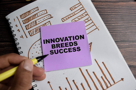 Concept of innovation breeds succes write on sticky notes isolated on Wooden Table. Business analysis chart