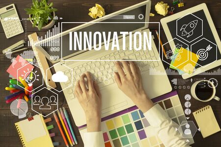 The concept word INNOVATION. Invention Development Design Concept.