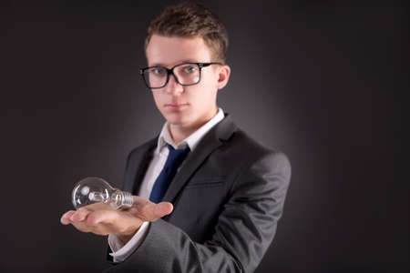 Young businessman with light bulb in idea concept