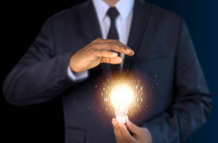 Business idea Businessman holding light bulb