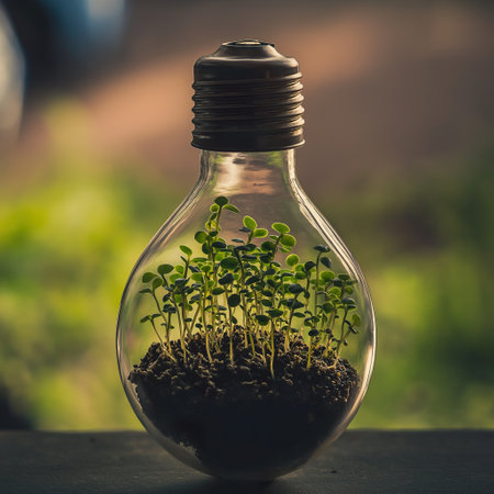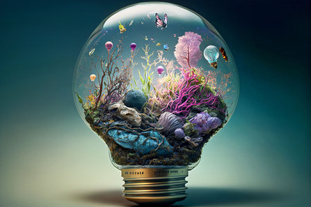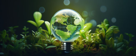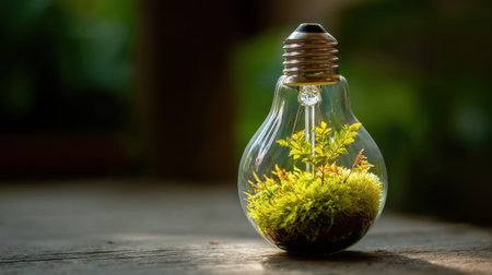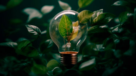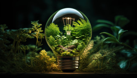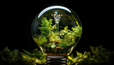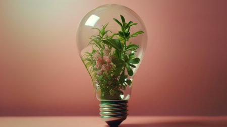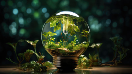 A light bulb filled with plants symbolizes ecofriendly innovation, sustainable growth, and environmental consciousness
