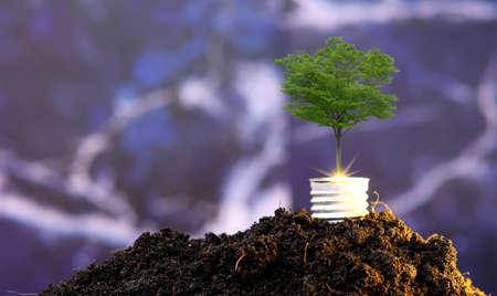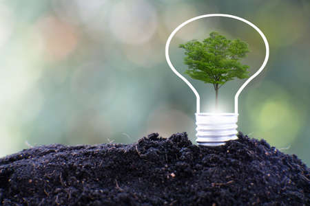 Saving energy and environment. Tree growth in light bulb for saving Ecology energy nature. Eco and Technology concept